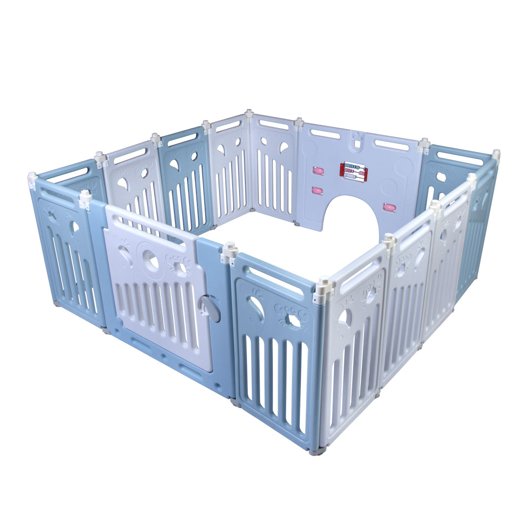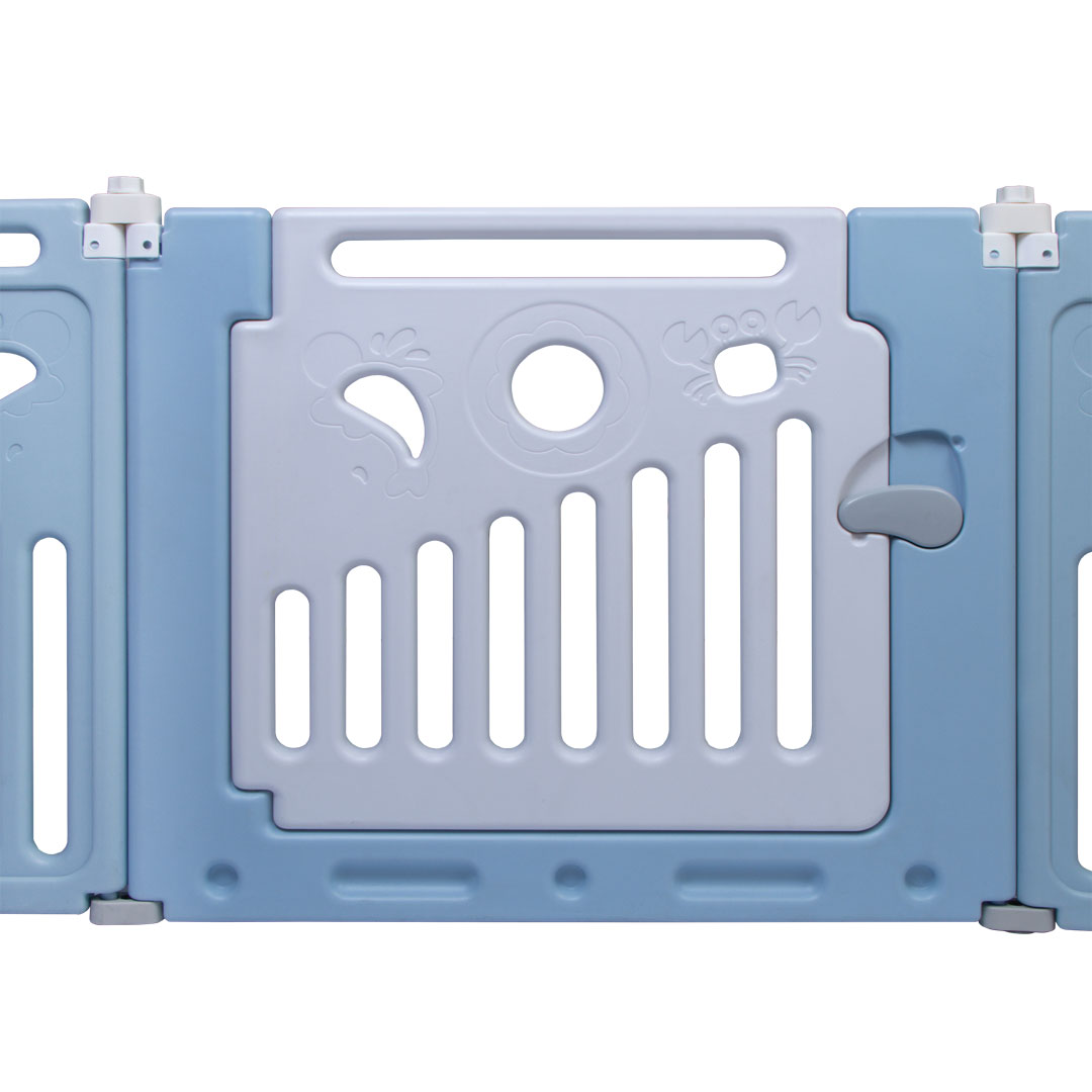 Это прочное пластиковое ограждение создаёт безопасную игровую зону для детей дома или на даче. Забор легко собирается из отдельных секций голубого или серого цвета, а удобная входная калитка обеспечивает доступ для родителей и детей.