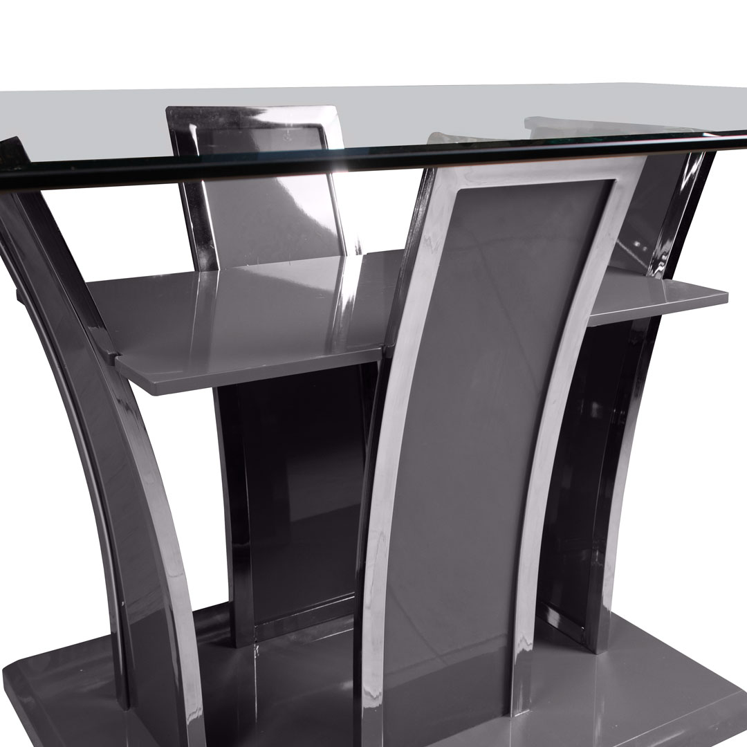 Конструкция стола Meteora с внушительными габаритами 183 на 107 сантиметров позволяет свободно организовать пространство для торжественного приема гостей, сохраняя атмосферу легкости за счет прозрачности стеклянных элементов. Серый оттенок деталей гармонично перекликается с современными фактурами бетона или камня, делая мебель органичной частью городского лофта или минималистичного загородного дома. Наличие функциональной стойки и аккуратных ножек обеспечивает монументальную устойчивость, а высокотехнологичный пластик в отделке придает изделию долговечность и простоту в уходе. Подобный предмет мебели в жилом пространстве вызывает прилив вдохновения и желания проводить больше времени за красиво накрытым столом в кругу семьи.