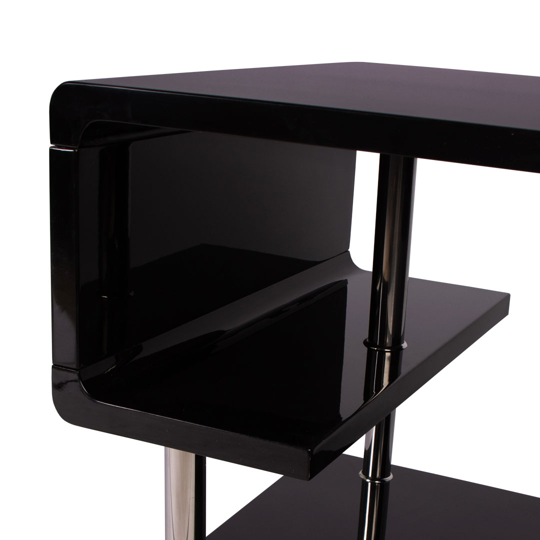 Использование тумбочки At sign в интерьере городского лофта или минималистичных апартаментов помогает сформировать завершенный образ спального места, где функциональность соединяется с эстетикой металла. Рабочие поверхности верхнего и нижнего ярусов обеспечивают достаточно места для лампы или аксессуаров, а узкая средняя полочка служит изящным акцентом для хранения мелочей. Стальные столбики диаметром три с половиной сантиметра надежно удерживают конструкцию, создавая интересный контраст между холодным блеском металла и матовой черной фактурой. Нахождение такого функционального арт-объекта в доме свидетельствует о любви к качественным материалам и продуманному дизайну.
