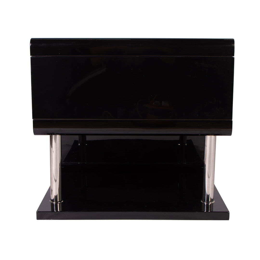 Строгая геометрия At sign одинаково выразительна и в минималистичной спальне, и в интерьере с более сложными сценариями. Толщина стенок в три сантиметра визуально утяжеляет корпус, делая его похожим на каменный блок, но металлические опоры диаметром три с половиной сантиметра возвращают конструкции воздушность. Нижняя плоскость повторяет габариты верхней, создавая ощущение архитектурной завершенности.