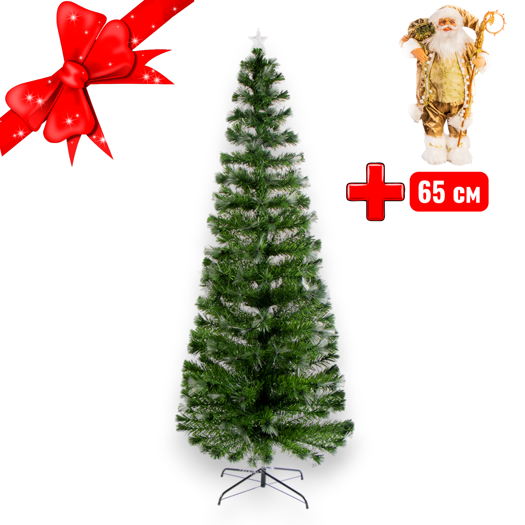 Елка оснащена двумя видами свечения – светодиодными лампами и оптоволоконными кистями. Иголочки-кисти дают разнообразное радужное свечение. Они светят достаточно ярко, при этом потребляют минимум энергии, снижая расходы на подсветку. Светодиоды не нагреваются, и к ним можно без опасений прикасаться. А также исключается возможность выброса токсинов и неприятных запахов при нагревании пластика. Так что елку можно установить в столовых зонах и даже спальных помещениях. А в просторных актовых залах можно спокойно проводить детские утренники и праздники.