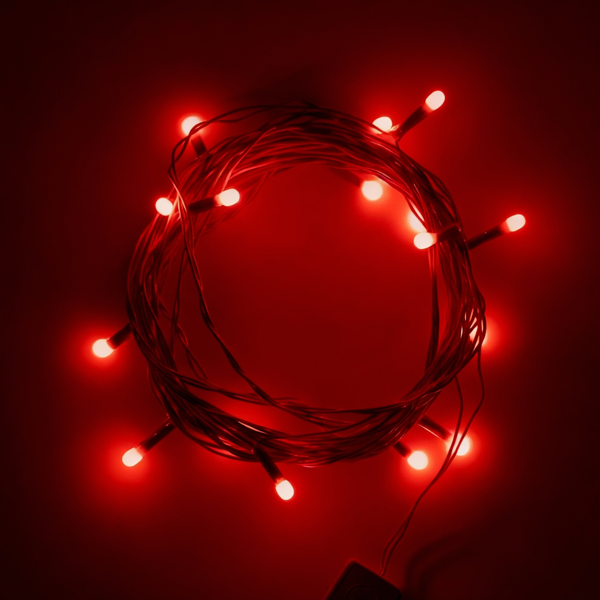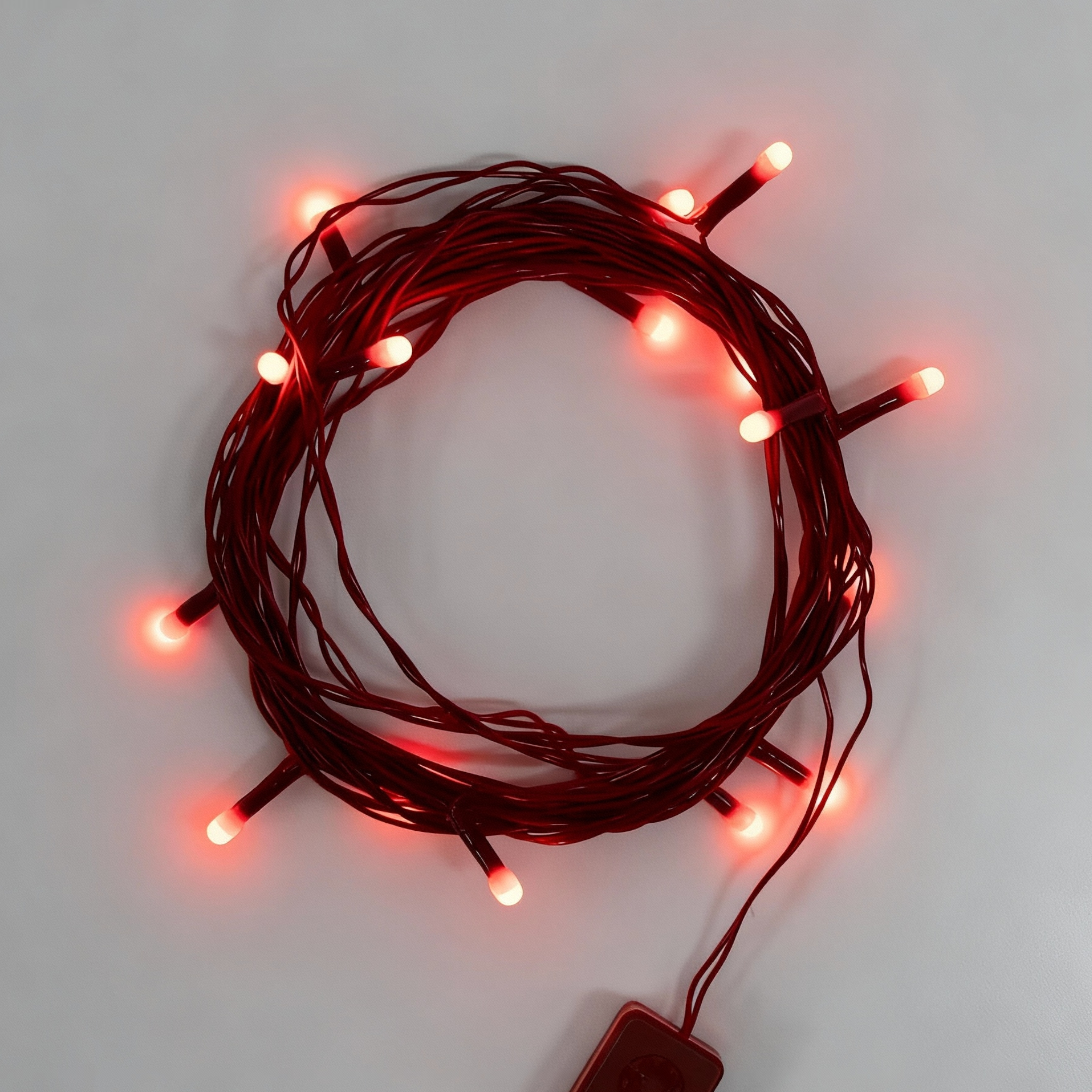 Красная светодиодная нить является идеальным способом добавить в ваш новогодний декор акцентный цвет и ощущение волшебства.