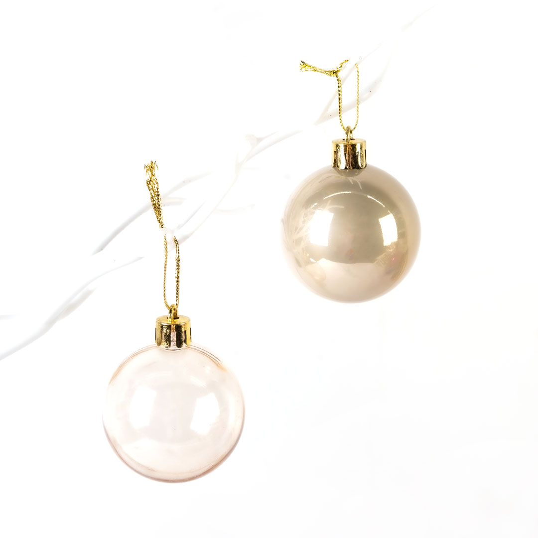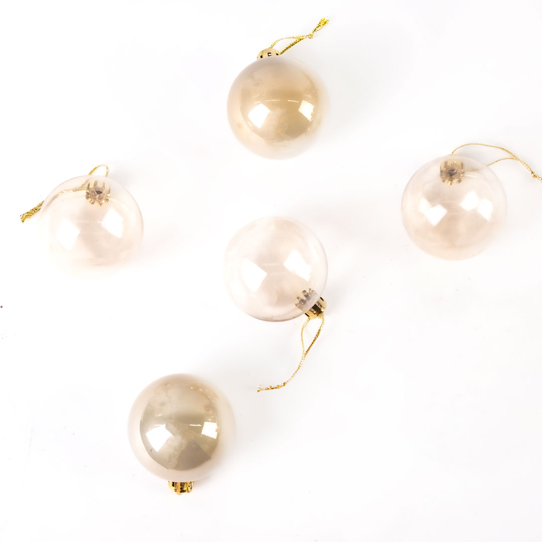 В наборе вы найдете 3 прозрачных шара, которые добавляют нотку воздушной легкости и пару глянцевых жемчужных шаров, имеющих особый мерцающий эффект.