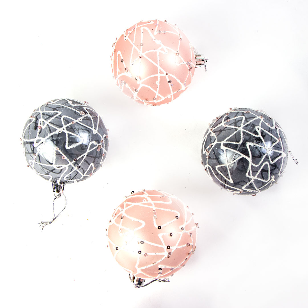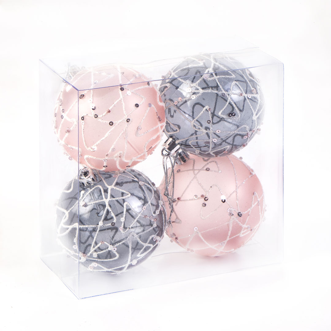 В наборе Вы найдете 4 прозрачных шара нежных оттенков: розового и серо-синего. Оформленные бисером и упакованные в красивую пластиковую коробку, они станут прекрасным украшением для Вашей новогодней елки. Размеры коробки составляют 16x16x9 см, что делает ее удобной для хранения и транспортировки. Материал игрушек – высококачественный пластик – обеспечивает их прочность и долговечность. Подарите себе и своим близким сказочное новогоднее настроение с елочными игрушками Crystalline!