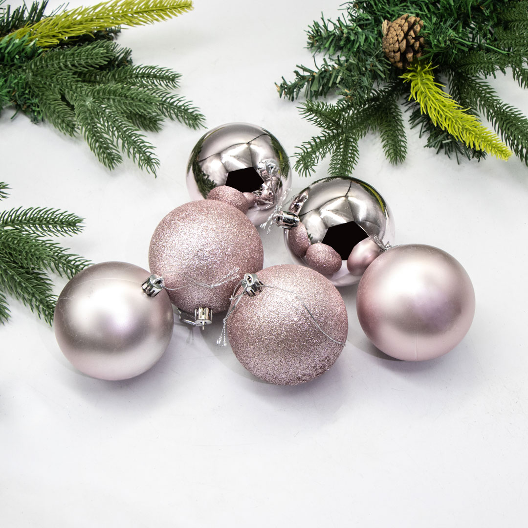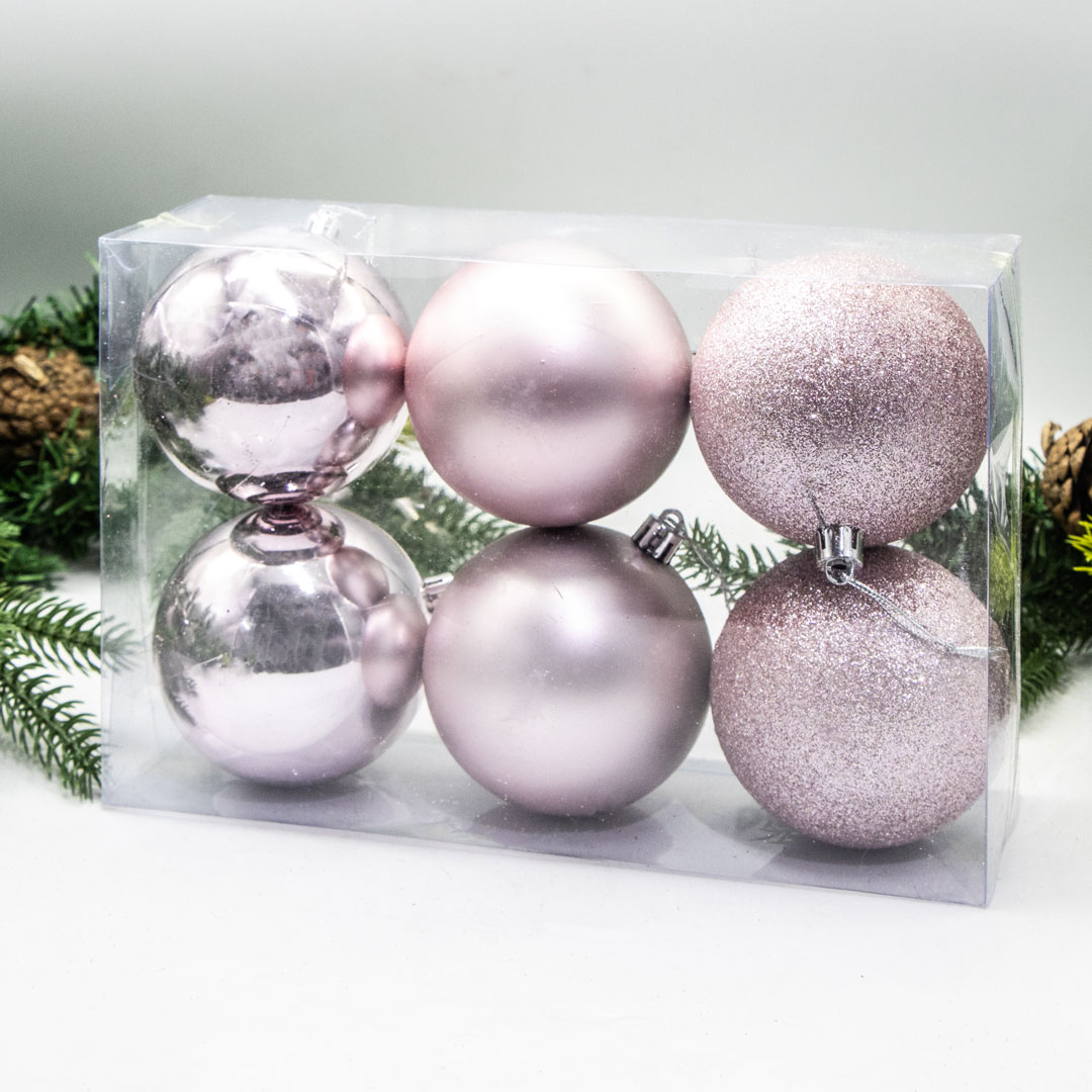 Чарующий набор Lattice включает в себя 6 ярких ёлочных шаров диаметром 8 см – это идеальный выбор для создания праздничной атмосферы. Нежного розового цвета шарики имеют различную фактуру: 2 матовых, 2 с блестками и 2 глянцевых. Их сочетание создает неповторимые световые эффекты, привлекая внимание всех присутствующих к вашему новогоднему декору.