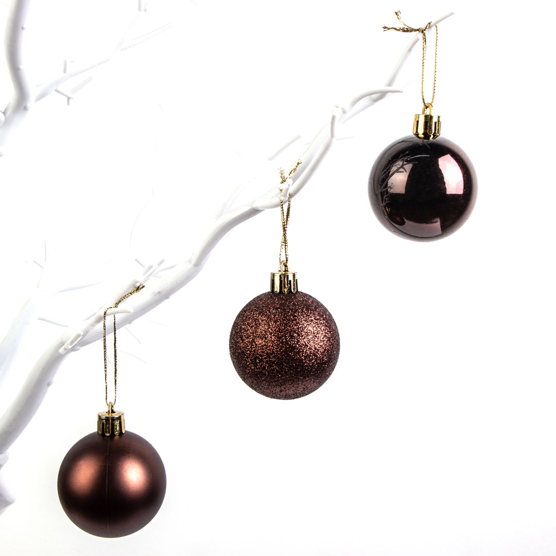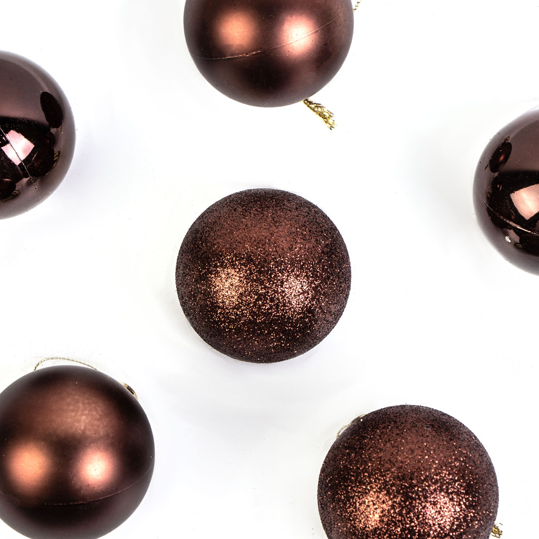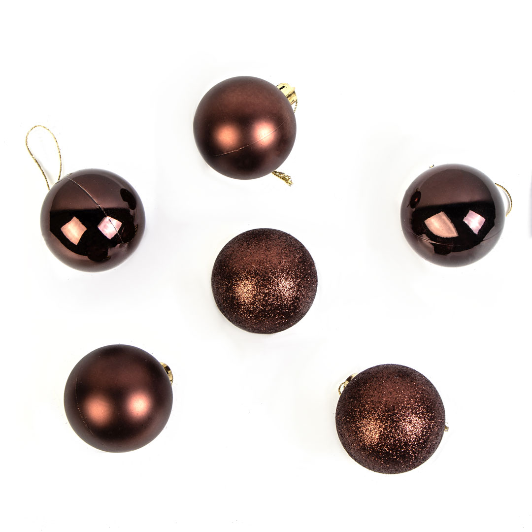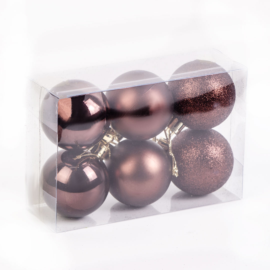 Шары приятного кофейного оттенка гармонично впишутся в любой интерьер, став изысканным дополнением к его оформлению. Два шара с матовой поверхностью, два – с глянцевой и два – с эффектом блесток позволят создать на ёлке настоящую новогоднюю феерию. Прочные и долговечные пластиковые шары порадуют вас своим качеством, а удобный тип крепления в виде петельки обеспечит простоту и безопасность их использования. Прозрачная пластиковая упаковка надежно сохранит шары во время транспортировки и хранения. Выбирая набор ёлочных шаров Revenue, вы делаете выбор в пользу качества, стиля и элегантности. Это идеальное решение для создания праздничного настроения в вашем доме.