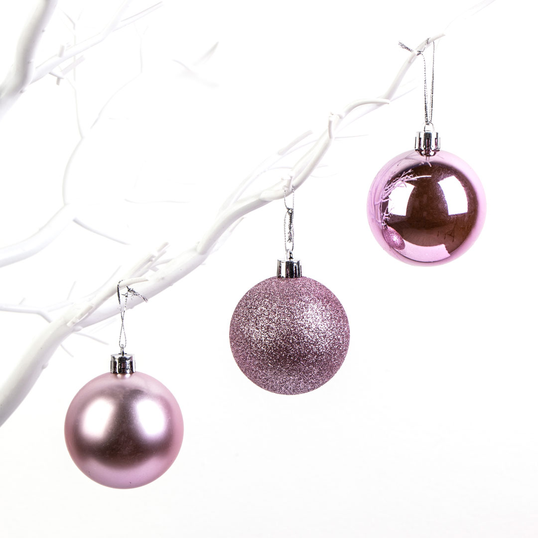 Шарики диаметром 6 см выполнены в элегантном розовом цвете, что придаёт им особый шарм и делает их отличным выбором для создания утонченного декора. Фактура шариков разнообразна: 2 из них матовые, 2 – глянцевые и 2 украшены блестками. Такое сочетание позволяет создавать неповторимые композиции на елке, а также сочетать их с другими элементами декора. Все шарики изготовлены из высококачественного пластика. Это обеспечивает им прочность, долговечность и легкость в уходе. Тип крепления – петелька – делает размещение шариков на елке быстрым и удобным. Комплект упакован в стильную прозрачную пластиковую коробку. Такой вид упаковки не только надежно сохраняет шарики от повреждений, но и выглядит весьма презентабельно. Подарите себе и своим близким неповторимую атмосферу праздника с набором ёлочных шаров Satin!
