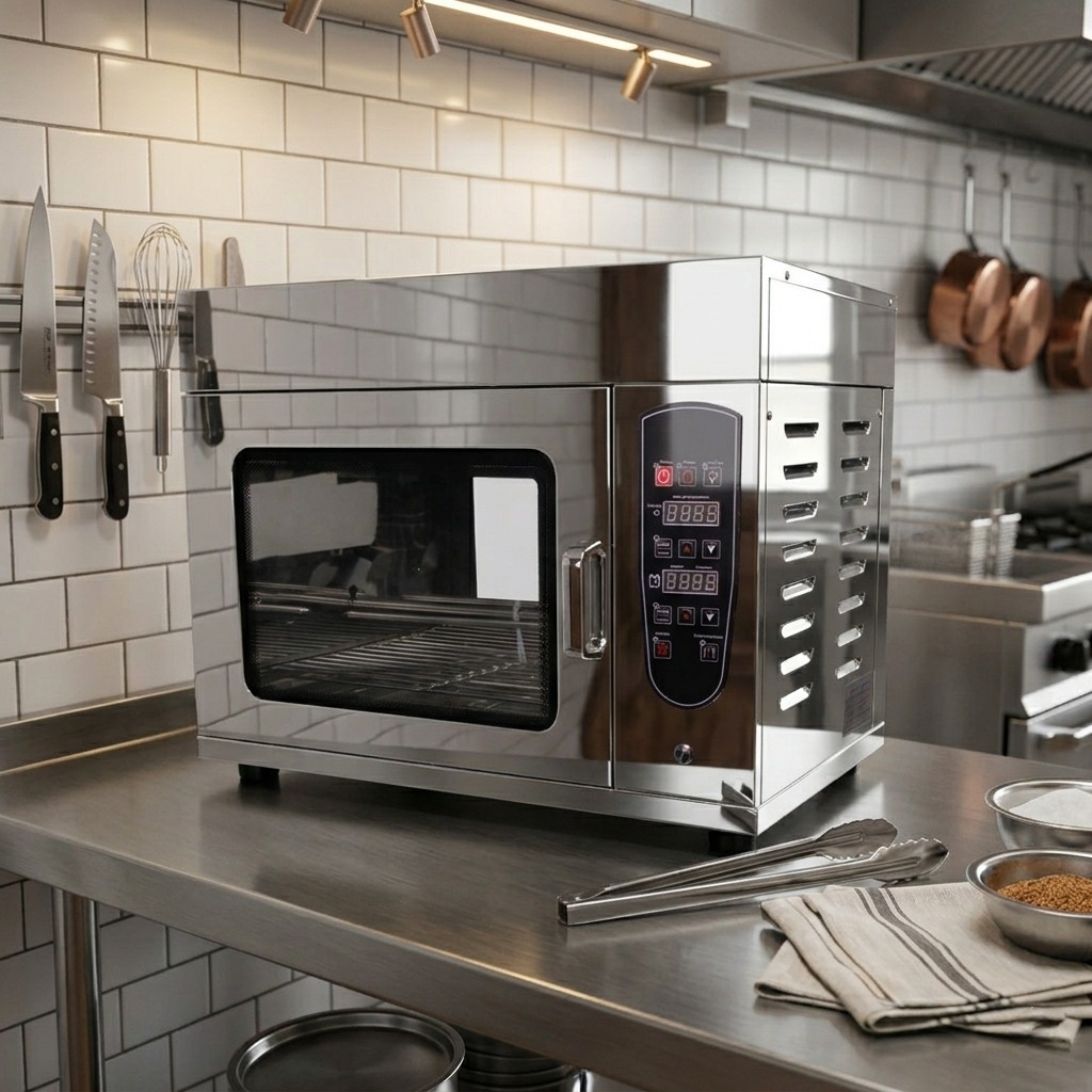 Благодаря компактным размерам 68.5x38x53 см и стильному внешнему виду, этот аппарат легко впишется в любой интерьер. Работает от сети 220 В и имеет мощность 3.6 кВт, что обеспечивает быстрое и равномерное нагревание. Диапазон температур 50-300°C позволяет готовить разнообразные продукты.