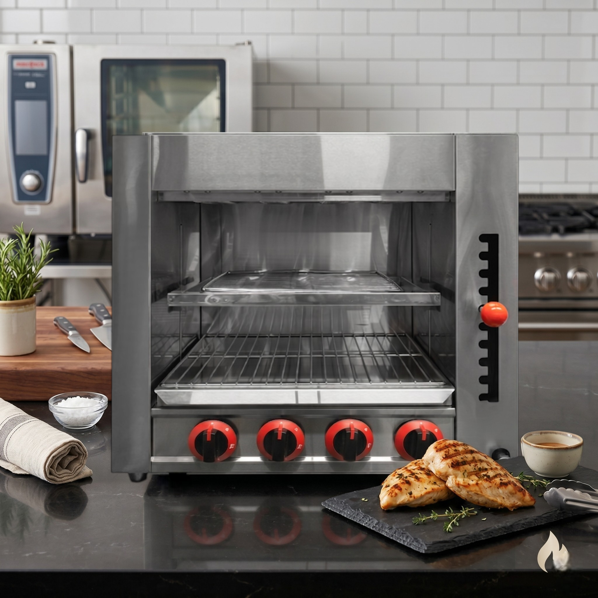 Если вам необходим более производительный гриль, стоит присмотреться к Саламандре на 6 горелок или на 8 горелок.