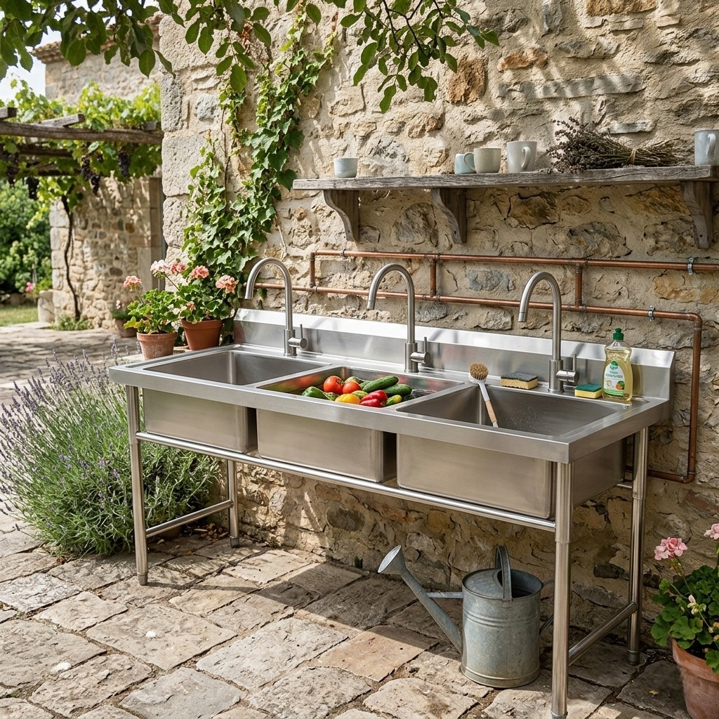 Трехсекционная модель (артикул: Shawaba03) – великолепный вариант! Помимо сразу трёх секций для мытья посуды и инструментов, среди достоинств этой ванны можно назвать материалы изготовления – нержавеющая сталь и алюминий. Строгое соответствие ГОСТ, практичность и надёжность. Эти металлы просты в уходе и отличаются высоким уровнем износостойкости.