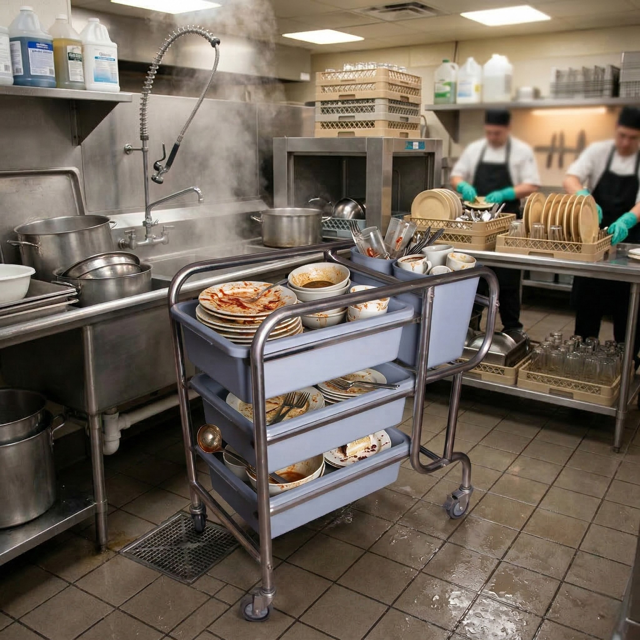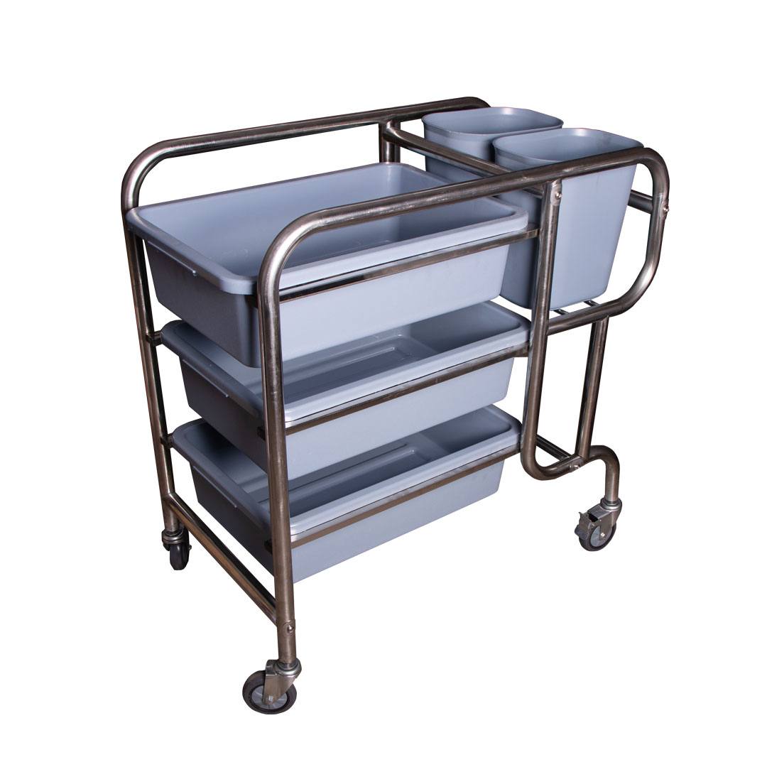 Тележка Meccano big создана для того, чтобы превратить повседневную работу персонала в организованный и комфортный процесс. Прочный каркас из нержавеющей стали выдерживает высокие нагрузки, а три вместительные полки и два пластиковых резервуара позволяют одновременно перевозить готовые блюда, напитки или посуду и тут же собирать использованные тарелки и столовые приборы. Такая комбинация делает тележку универсальной: она одинаково хорошо подходит для подачи, сервировки, уборки и сортировки. Устойчивые колеса диаметром 10 см обеспечивают плавное и тихое движение даже по загруженному залу, благодаря чему Meccano big легко перемещается между кухней и гостевой зоной без риска опрокидывания или повреждения поверхностей.