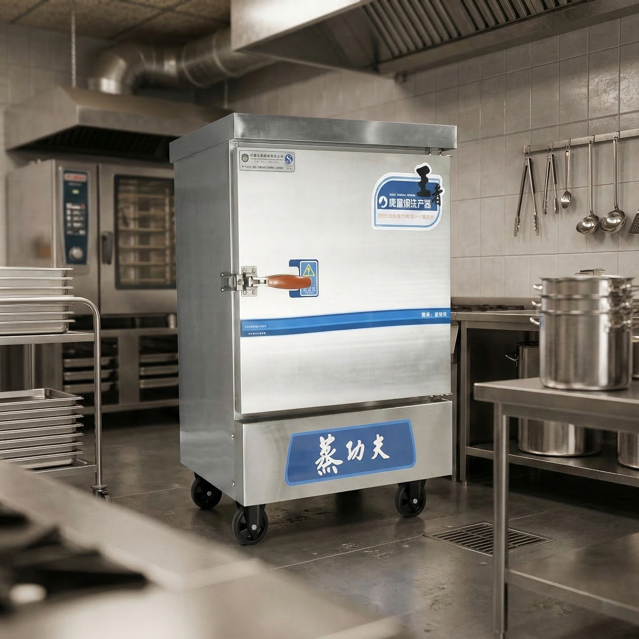Эти агрегаты нужны для качественного и быстрого приготовления пищи на пару. В комплект данного парового шкафа входит 6 листов, то есть вы можете готовить до 6-ти порций одновременно. В зависимости от того, что именно вы готовите, вы устанавливаете необходимую температуру и время. В целом, 16 кг риса вы можете приготовить за 40 минут, а 20 кг рёбрышек – всего за 8 минут.