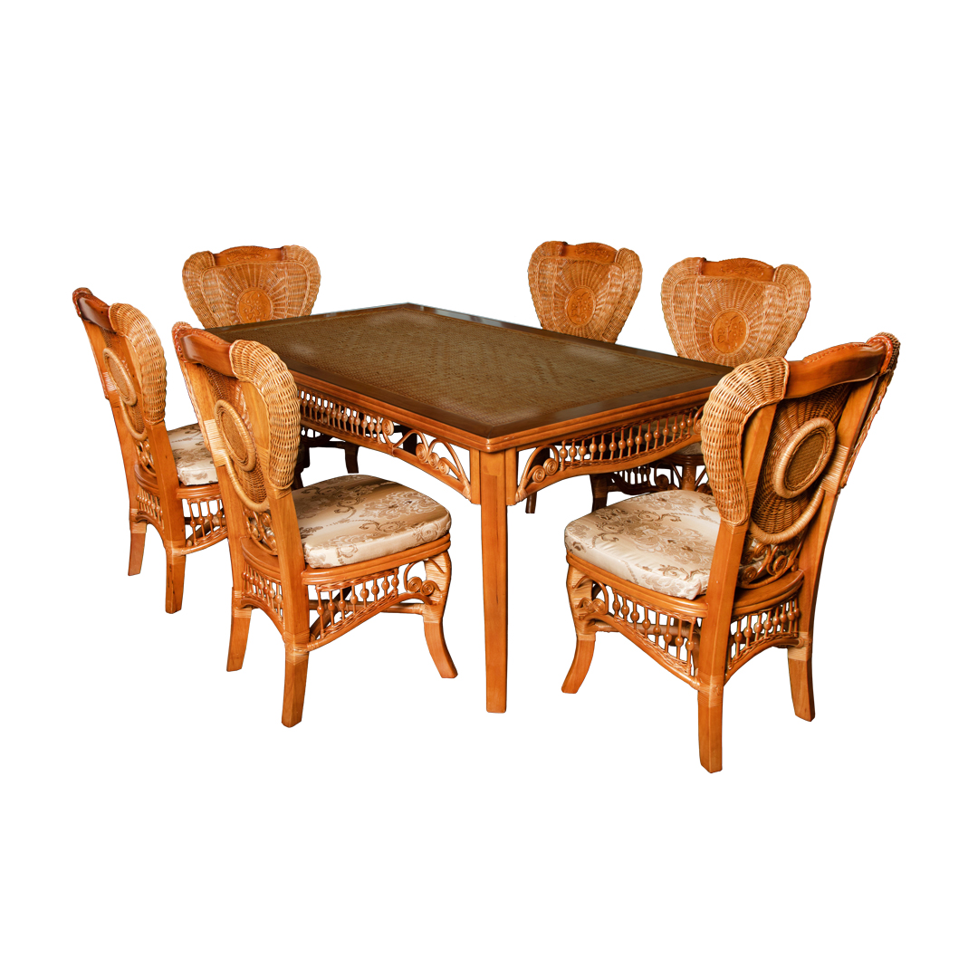 Приглашайте друзей и близких на обед за стол Caladium! Этот гарнитур из натурального индонезийского ротанга создаст атмосферу уюта и гостеприимства в вашем доме или на открытой террасе. Он станет идеальным местом для теплых встреч и приятных разговоров.