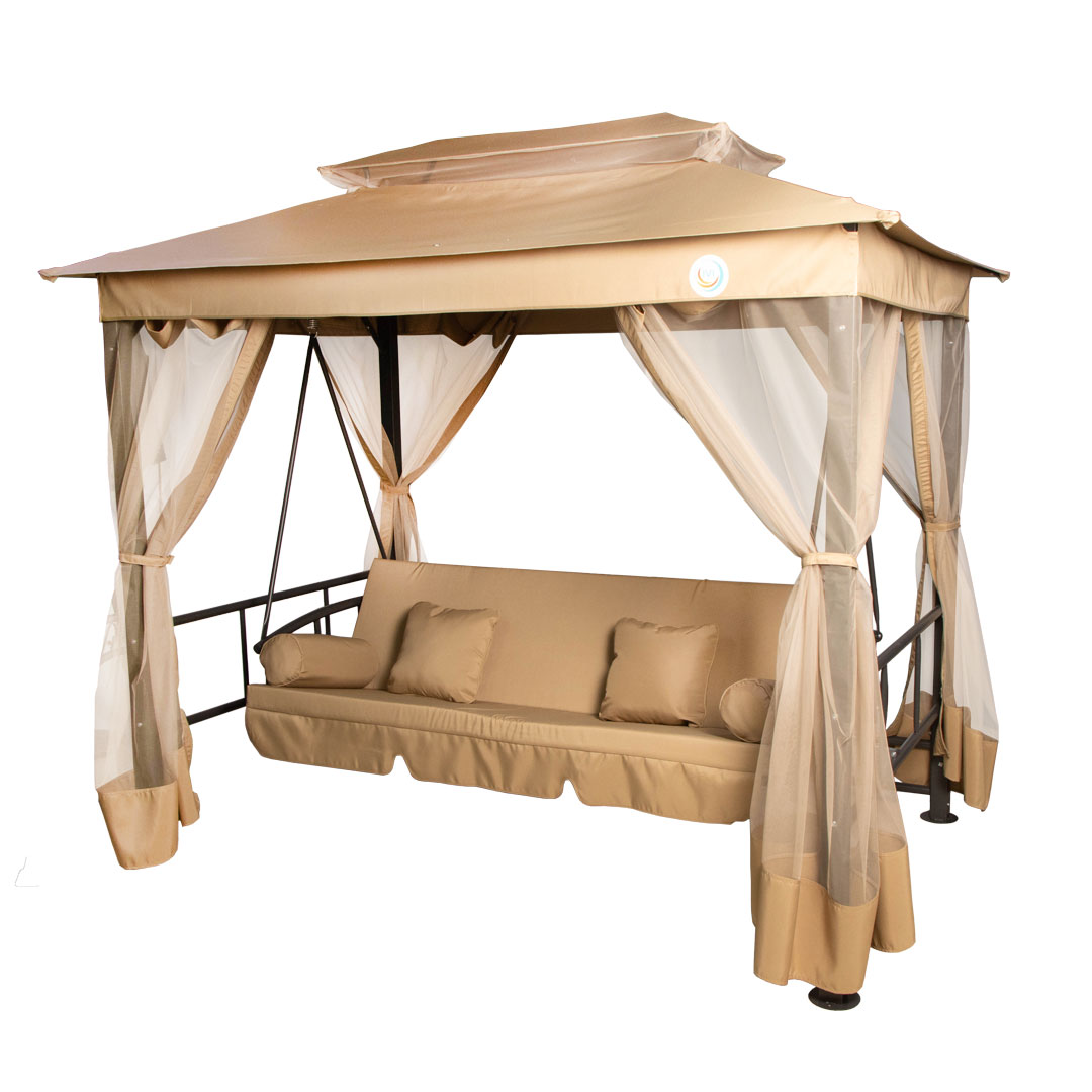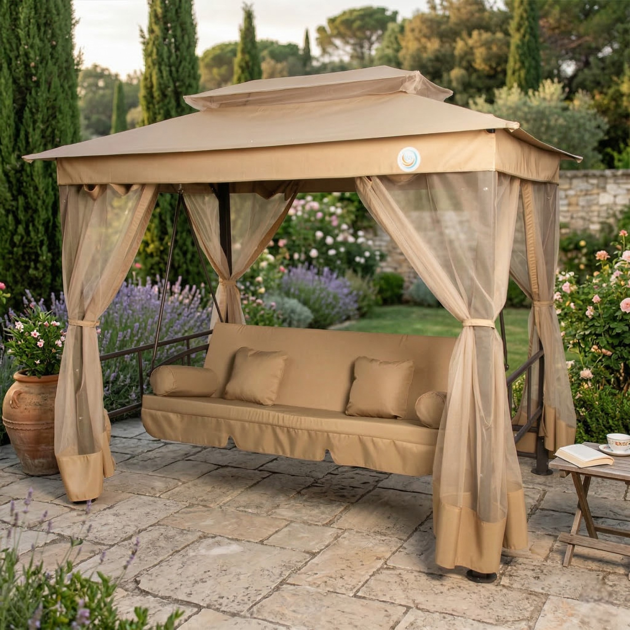 Качели изготовлены в нейтральных коричневых и бежевых тонах, которые будут уместны в самых разных обстоятельствах и местах и через много лет.