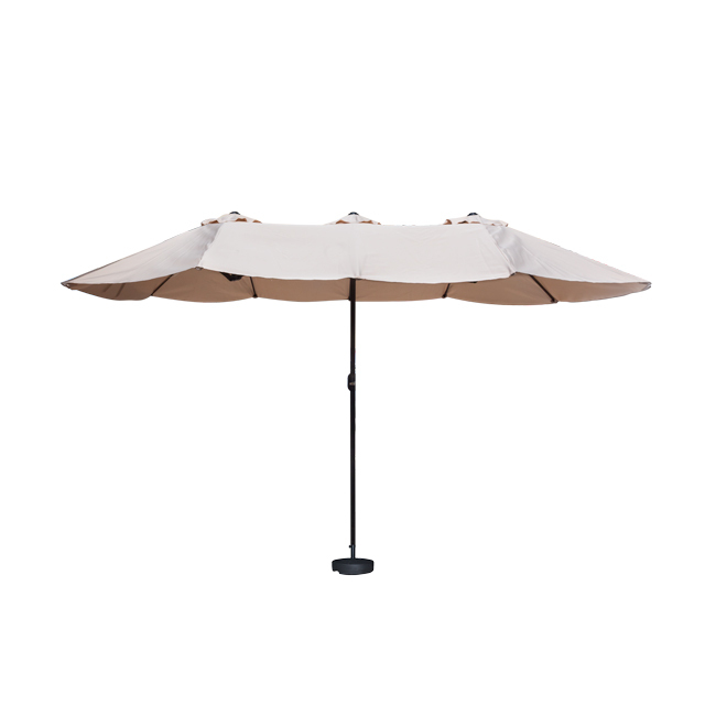 От опрокидывания конструкцию предохраняет пластиковый утяжелитель, который заполняется водой. С ним зонт приобретает феноменальную устойчивость.